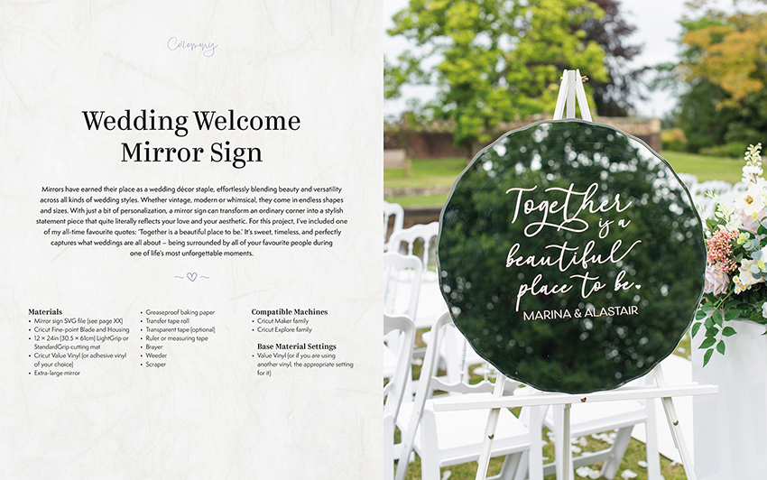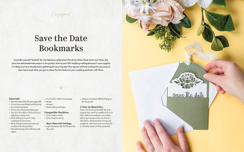 Cricut Weddings is a happy marriage of Chelsea’s years of experience as a wedding photographer and a Cricut ambassador and it reflects her love of helping couples create a truly personal angle to their wedding. There are templates for every project to get the reader started, and advice on how to adapt them to make them unique for the reader’s own wedding theme, love story and vision for their perfect day.