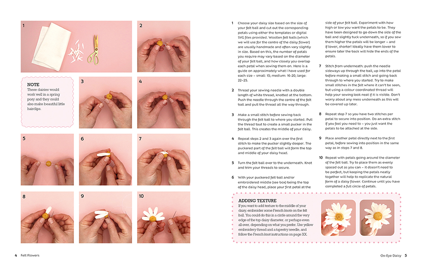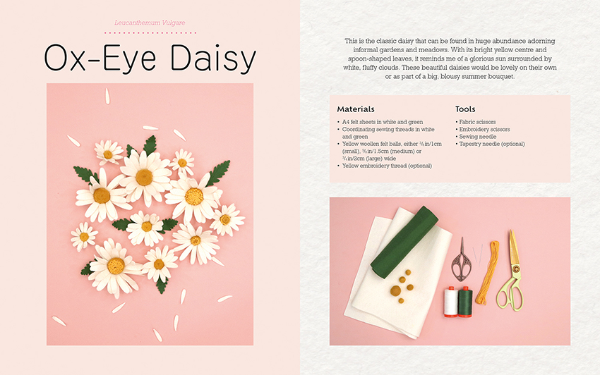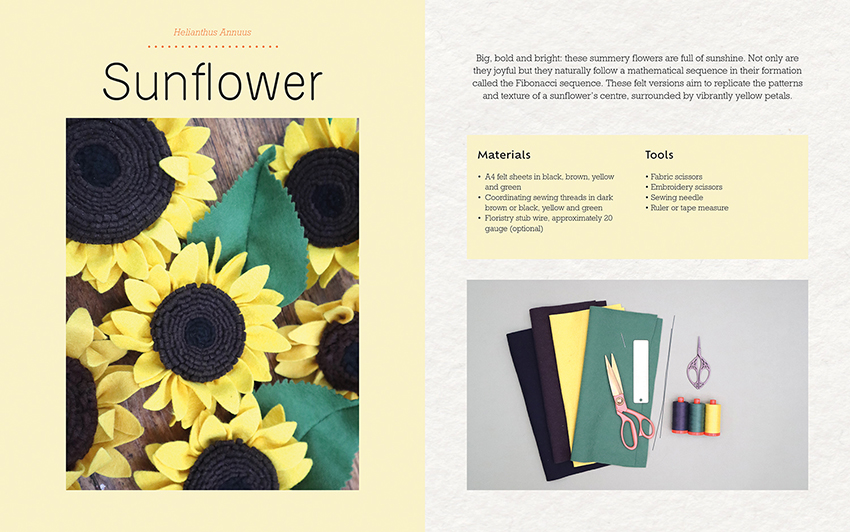 Felt Flowers features 20 gorgeous blooms made from felt. From festive poinsettia to vibrant sunflowers and fresh daisies, discover just how realistic felt flowers can be and how versatile they are – use them in bouquets, stunning centrepieces, buttonholes, garlands and more. Soft, flexible felt is perfect for beginners as it’s easy to cut and shape, while its versatility enables experienced crafters to experiment with more intricate designs. Durable and long-lasting, felt flowers hold their shape and colour over time, making them perfect for keepsakes and gifts.