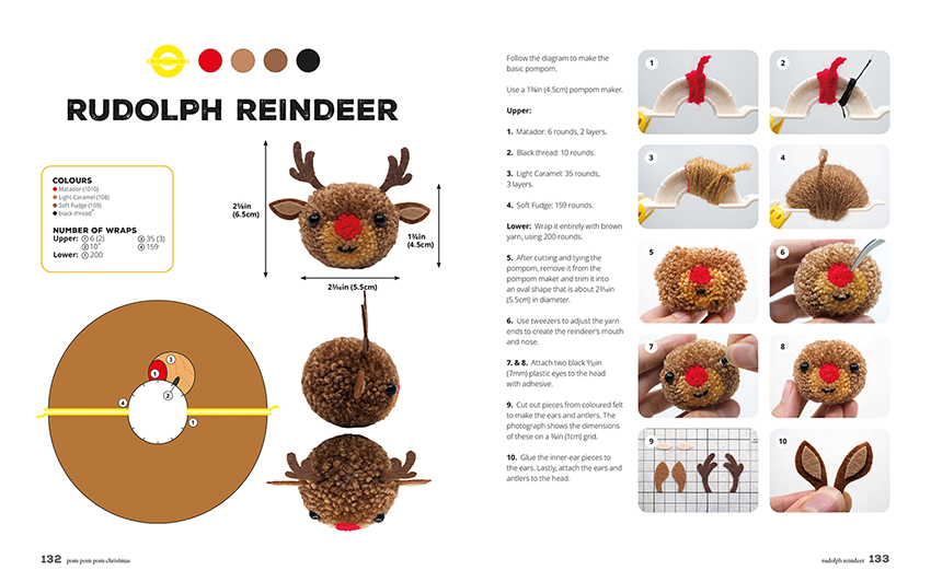 Pom Pom Pom Christmas includes 40 Christmas-themed pompoms to make for maximum festive impact.