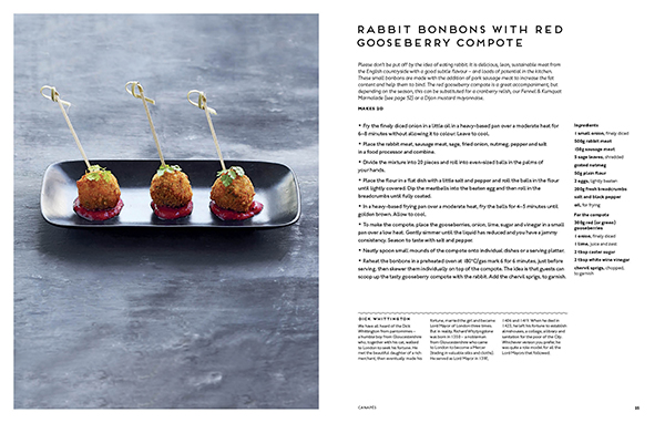 Recipes are separated into the following chapters: Canapés; Larder; Starters; Salads and Sides; Vegetarian and Vegan; Fish; Meat; Emulsions, Infusions, Essences and Good Gravy; Desserts; Cheese and Savouries; Chocolates and Sweetmeats. Alongside the recipes, Peter shares stories of London, menus he’s created, and anecdotes that divulge the secrets of the great kitchens and banquets in the Square Mile, giving the reader a rare and entertaining view behind ‘the green baize door’.